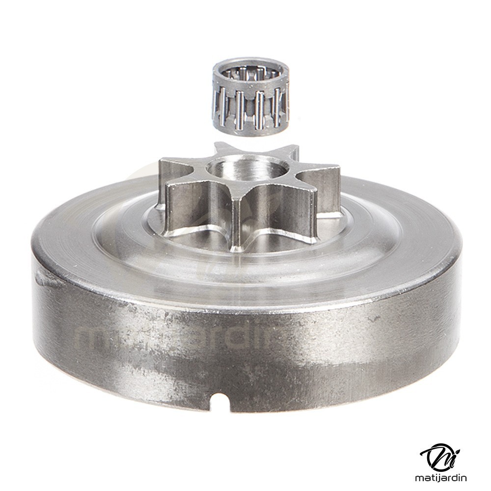 Le pignon d'entraînement de votre chaîne. L'entraînement de la rotation de votre chaîne est dû à la rotation du pignon. Ce pignon est lui-même propulsé par le moteur. L'espacement et le nombre de dents du pignon est en fonction du nombre d'entraîneurs de la chaîne et de son pas. Les entraîneurs guident votre chaîne dans le guide-chaîne et sont entraînés par le pignon. Le pas de la chaîne correspond à la longueur des maillons qui la constituent. A savoir : Notez les références avant de penser à remplacer le pignon, ces infos sont à respecter scrupuleusement.