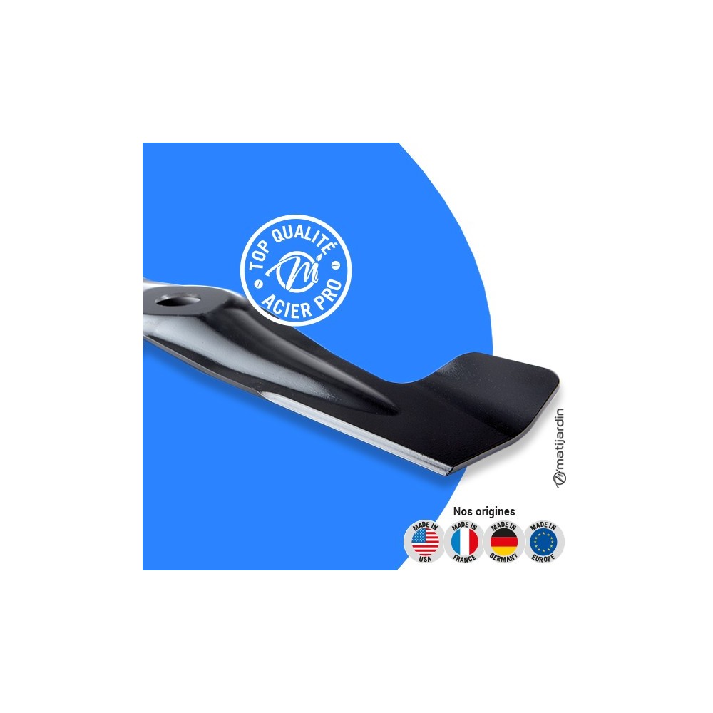 Astuce remontage. Au remontage, attention au sens de montage de la lame ! Pour la plupart des modèles de tondeuse, le côté plat du tranchant de la lame (illustration 2) doit se retrouver côté pelouse. Soyez vigilant, la partie coupante de votre lame peut vite vous envoyer aux urgences ! Matijardin vous conseille d’utiliser des gants.