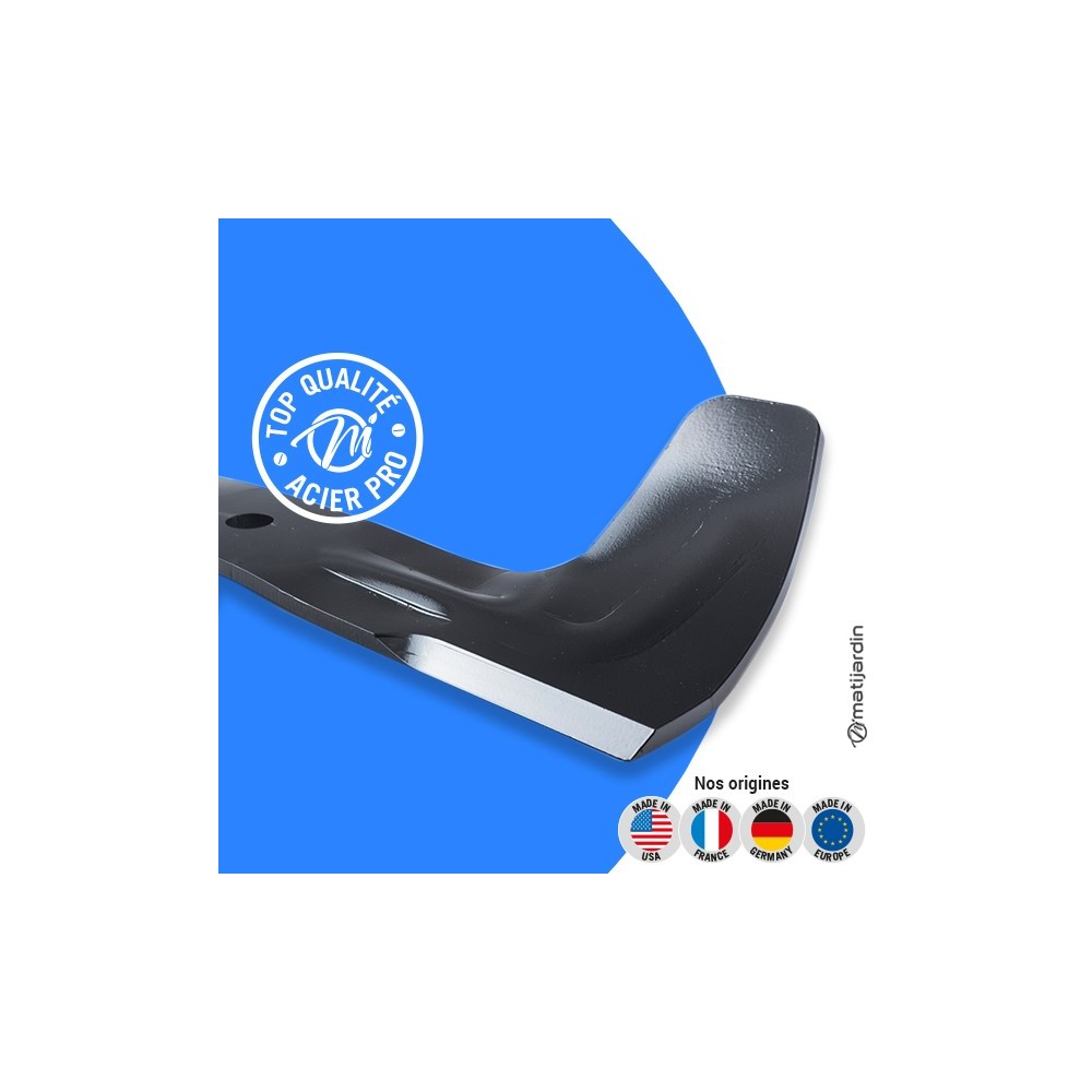 Astuce remontage. Au remontage, attention au sens de montage de la lame ! Pour la plupart des modèles de tondeuse, le côté plat du tranchant de la lame (illustration 2) doit se retrouver côté pelouse. Soyez vigilant, la partie coupante de votre lame peut vite vous envoyer aux urgences ! Matijardin vous conseille d’utiliser des gants.