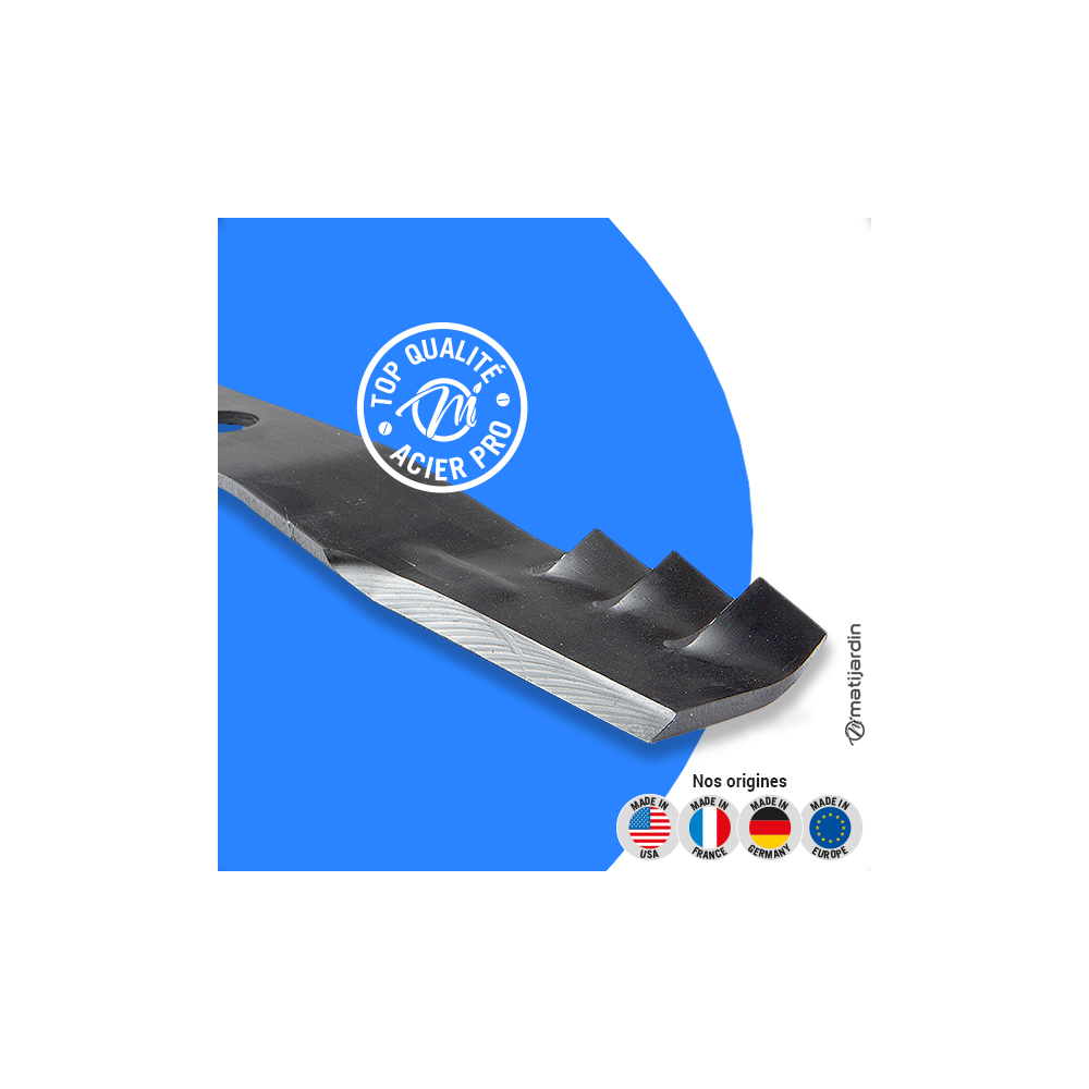 Astuce remontage. Au remontage, attention au sens de montage de la lame ! Pour la plupart des modèles de tondeuse, le côté plat du tranchant de la lame (illustration 2) doit se retrouver côté pelouse. Soyez vigilant, la partie coupante de votre lame peut vite vous envoyer aux urgences ! Matijardin vous conseille d’utiliser des gants.
