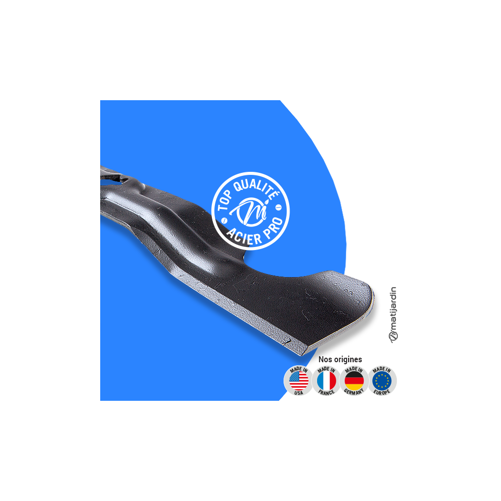Astuce remontage. Au remontage, attention au sens de montage de la lame ! Pour la plupart des modèles de tondeuse, le côté plat du tranchant de la lame (illustration 2) doit se retrouver côté pelouse. Soyez vigilant, la partie coupante de votre lame peut vite vous envoyer aux urgences ! Matijardin vous conseille d’utiliser des gants.