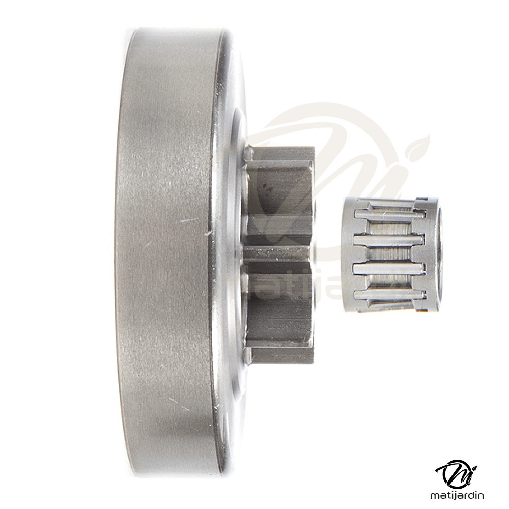 Le pignon d'entraînement de votre chaîne. L'entraînement de la rotation de votre chaîne est dû à la rotation du pignon. Ce pignon est lui-même propulsé par le moteur. L'espacement et le nombre de dents du pignon est en fonction du nombre d'entraîneurs de la chaîne et de son pas. Les entraîneurs guident votre chaîne dans le guide-chaîne et sont entraînés par le pignon. Le pas de la chaîne correspond à la longueur des maillons qui la constituent. A savoir : Notez les références avant de penser à remplacer le pignon, ces infos sont à respecter scrupuleusement.