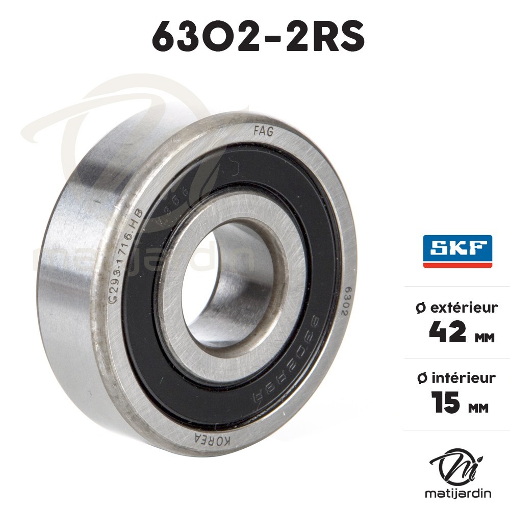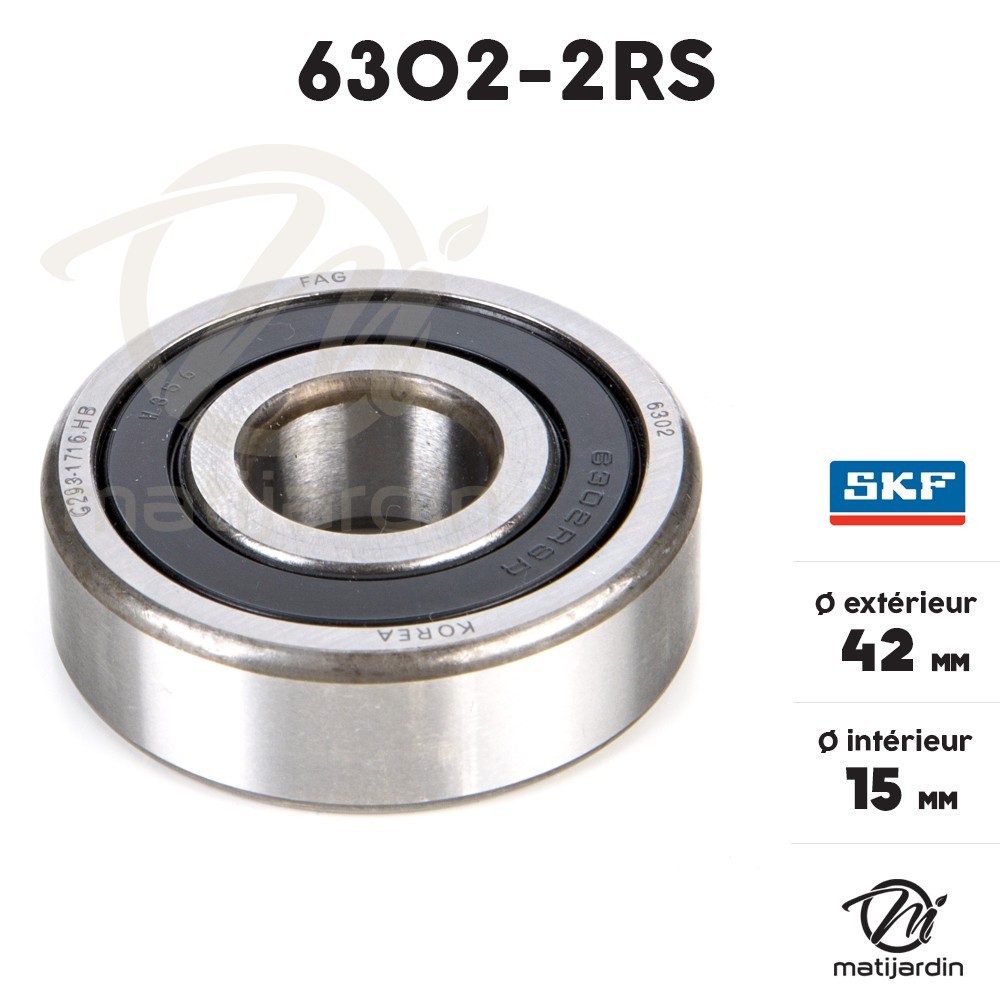 Référence roulement : 6302-2RS (Rangée de billes standard)
