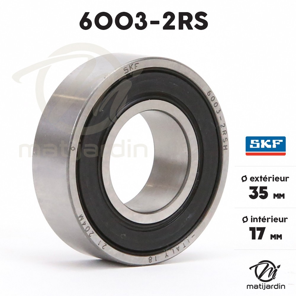 Référence roulement : 6003-2RS (Rangée de billes standard)