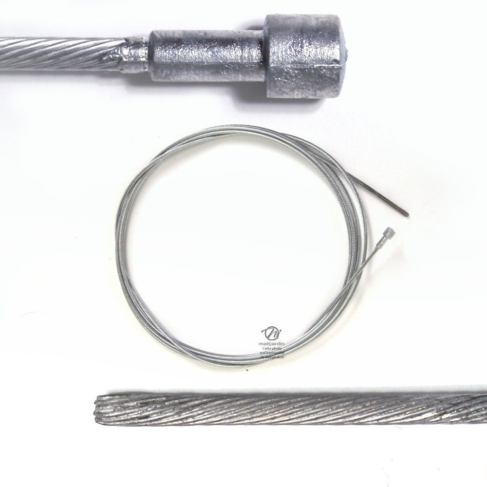 Câble souple, corde à piano. Diamètre 2,5 mm. Longueur 2,5 m. Tête 6,5 x 6,5 mm