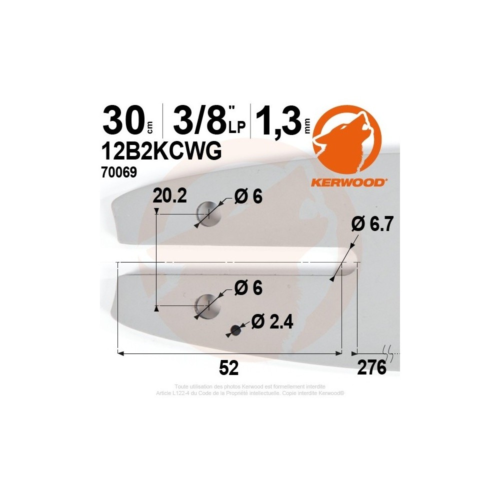 Guide tronçonneuse Kerwood 30 cm 3/8" LP. 1,3 mm. 44 maillons. 12B2KCWG