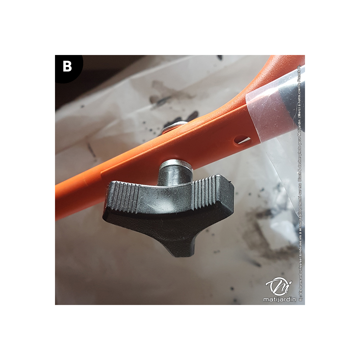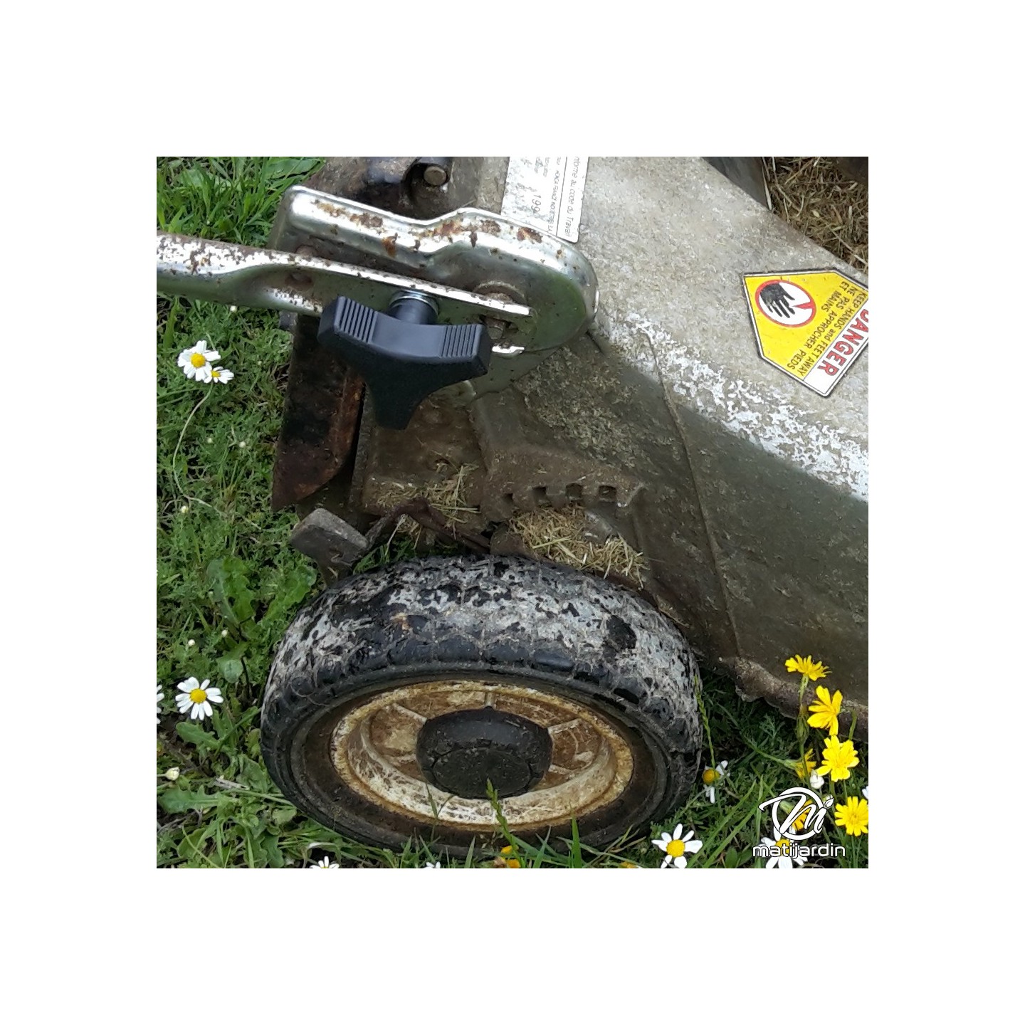 B) : Vis de brancard universel tondeuse vis à écrou papillon montée sur une tondeuse black et decker photo pour Matijardin. (Merci à notre client franck P).
