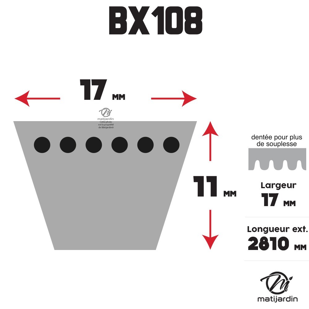 Courroie tondeuse Trapézoïdale crantée BX108 - 17 mm x 2810 mm