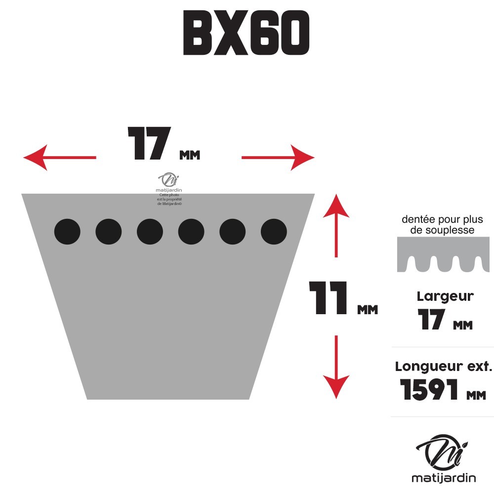 Courroie tondeuse BX60 Trapézoïdale crantée - 17 mm x 1591 mm