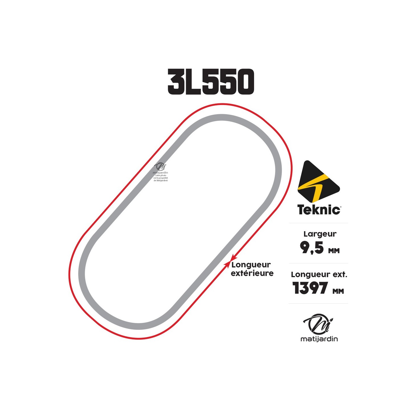 Courroie tondeuse Teknic 3L550 Kevlar Trapézoïdale - 9,5 mm x 1397 mm