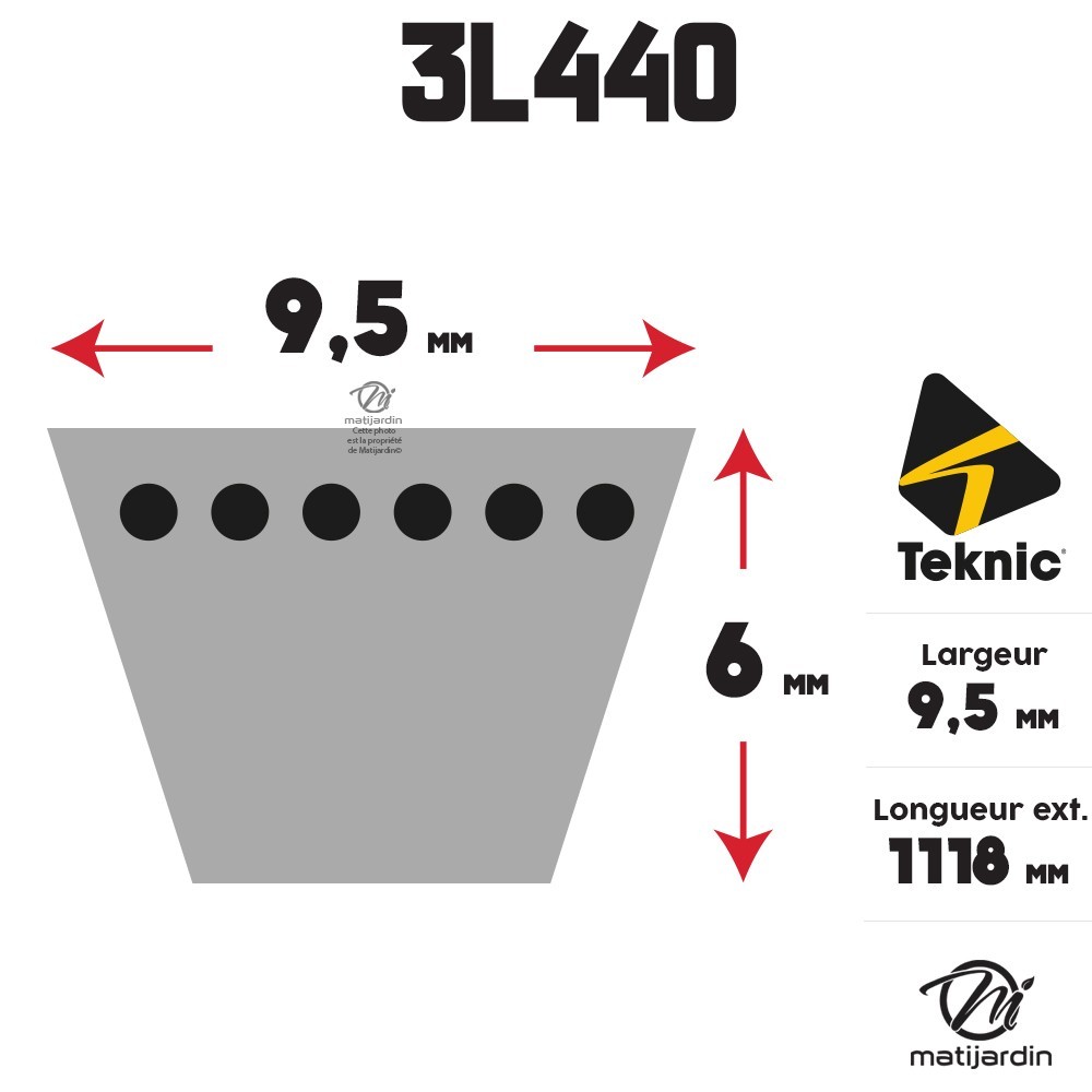Courroie tondeuse Teknic 3L440 Kevlar Trapézoïdale - 9,5 mm x 1118 mm