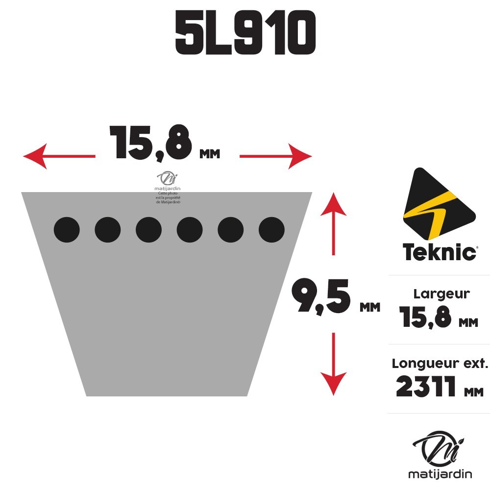Courroie tondeuse 5L910 Teknic Kevlar Trapézoïdale - 15,8 mm x 2311 mm
