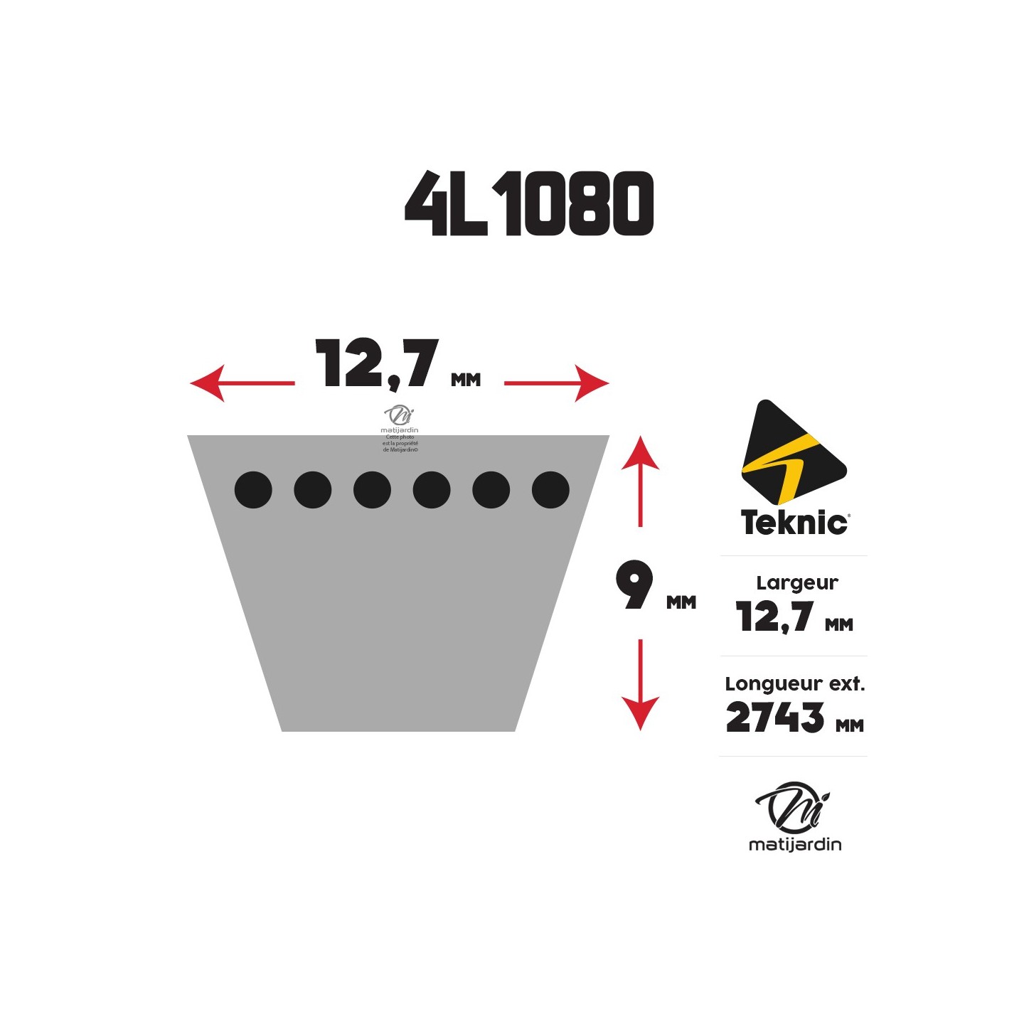 Courroie tondeuse 4L108 Teknic Kevlar Trapézoïdale - 12,7 mm x 2743 mm
