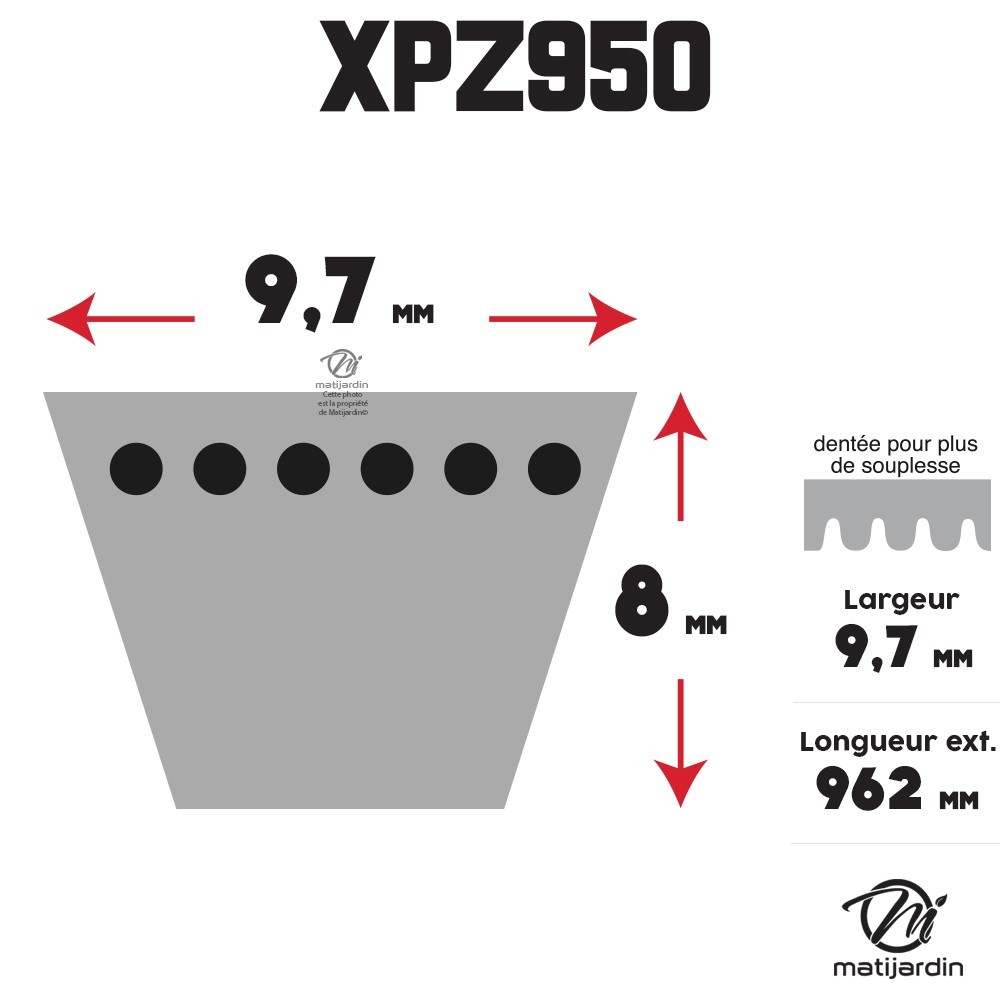 Courroie tondeuse XPZ950 Trapézoïdale crantée - 9,7 mm x 962 mm