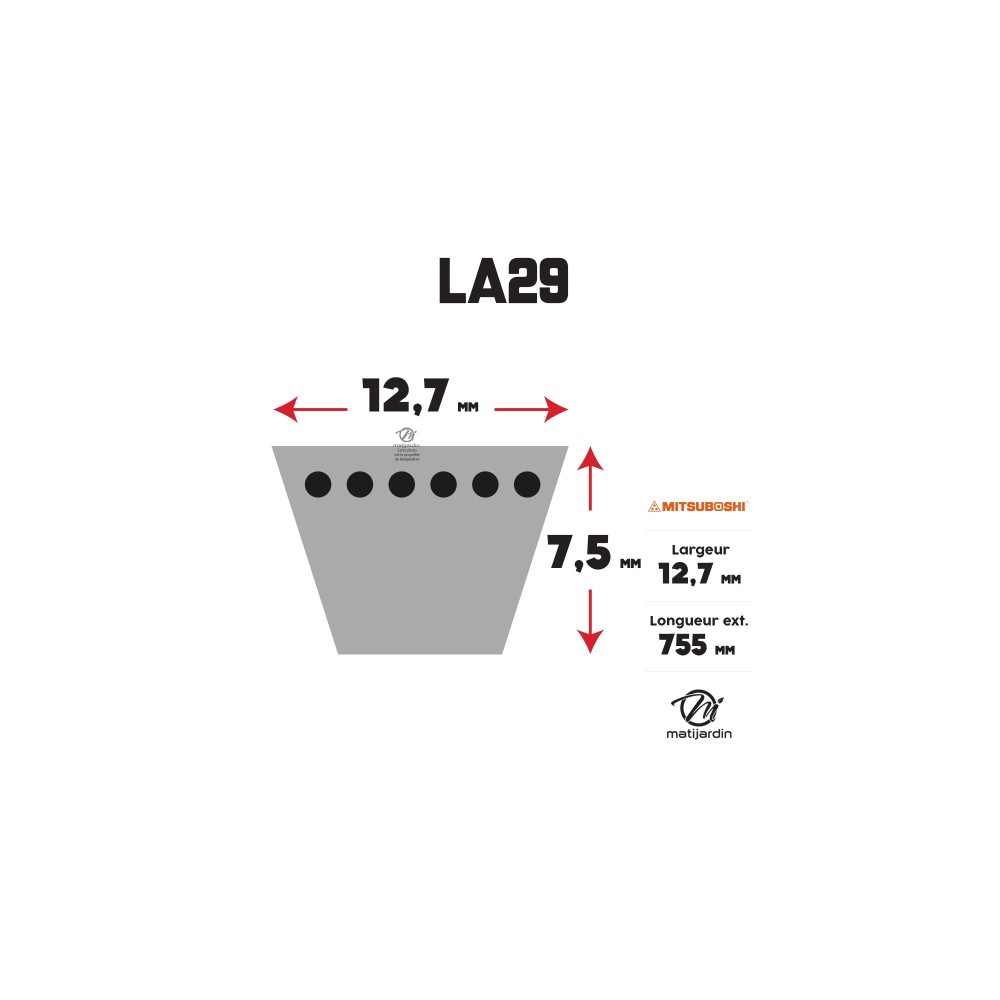 Courroie tondeuse Mitsuboshi LA29 - 12,7 mm x 765 mm