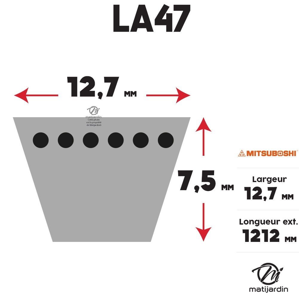 Courroie tondeuse Mitsuboshi LA47 - 12,7 x 1206 mm
