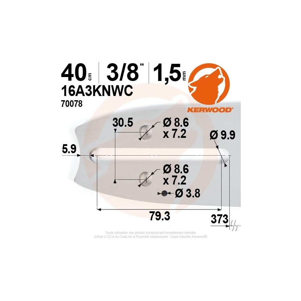 Guide tronçonneuse Kerwood 40 cm 3/8" 1,5 mm. 60 maillons. 16A3KNWC
