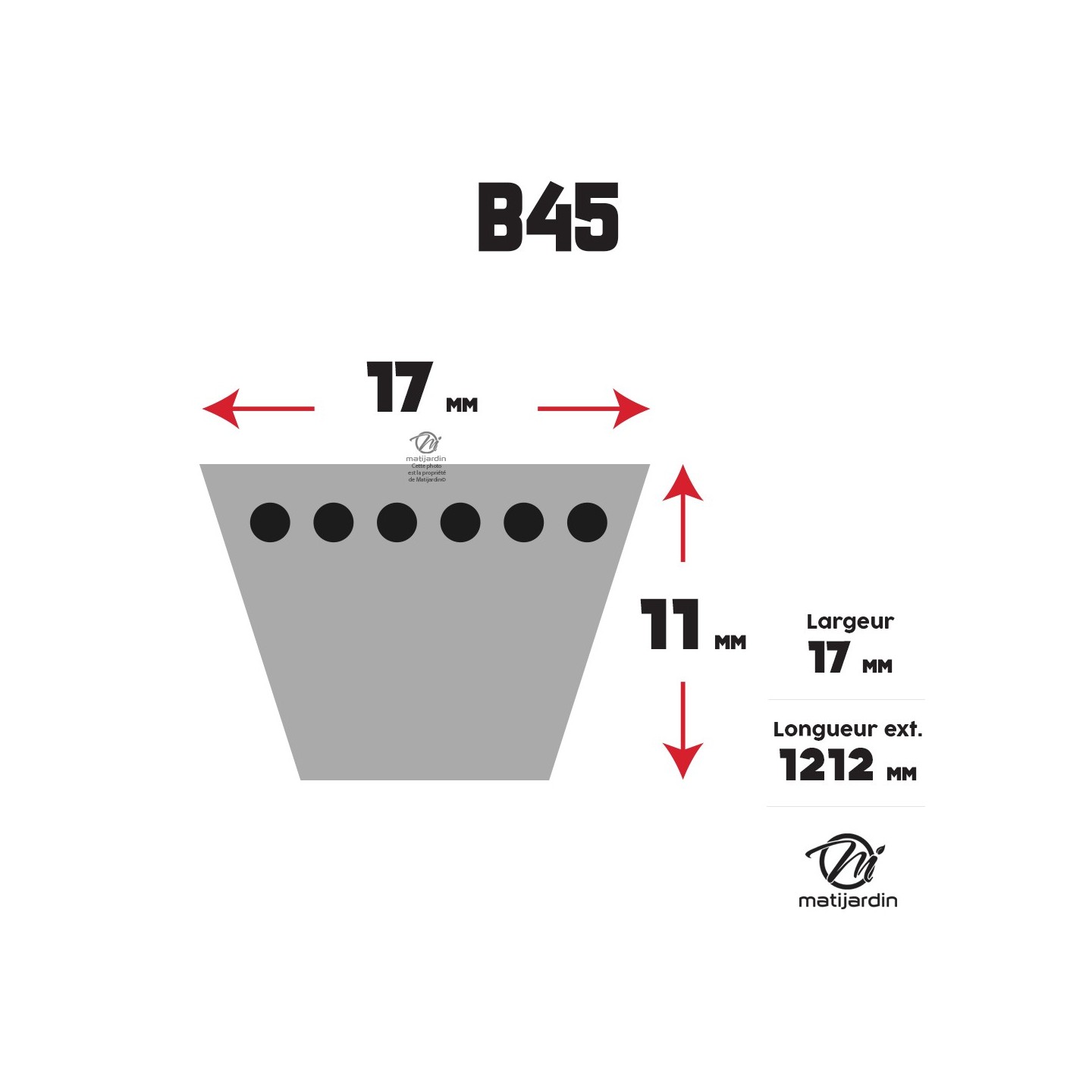 Courroie tondeuse B45 Trapézoïdale - 17 mm x 1212 mm