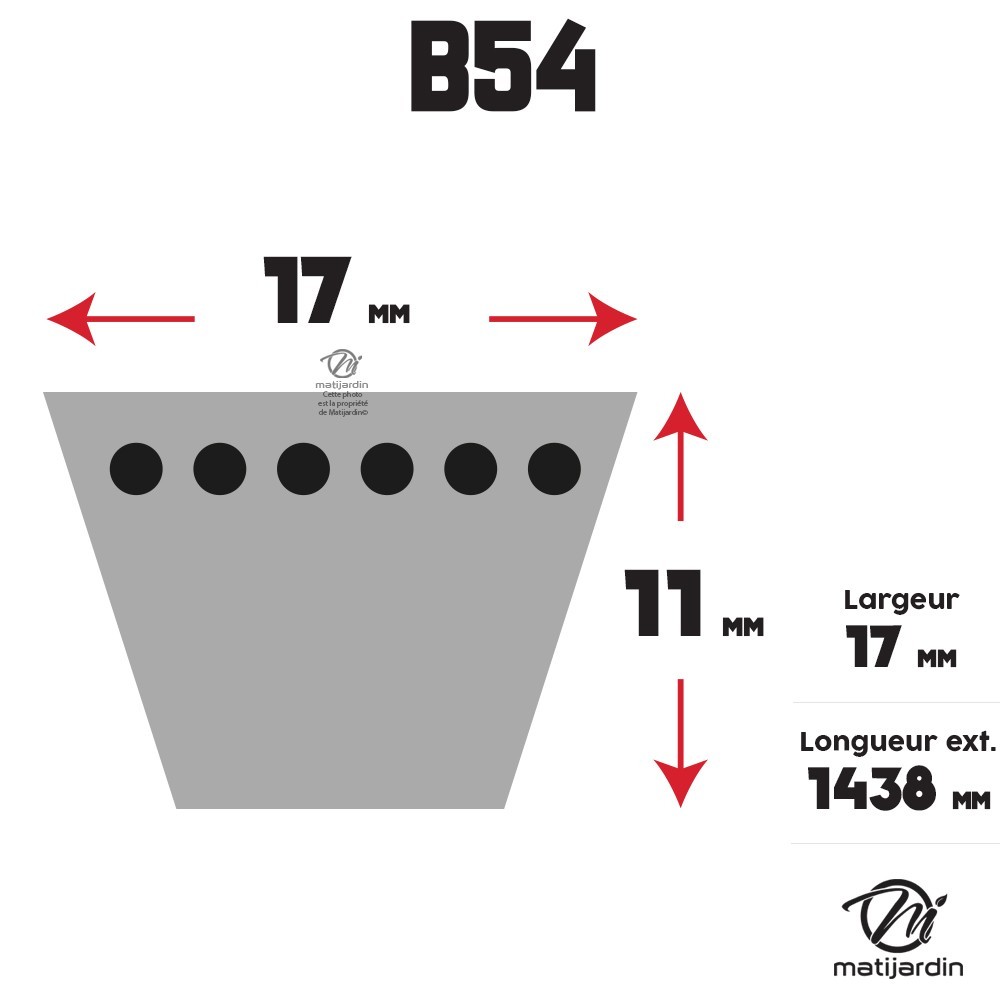 Courroie tondeuse B54 Trapézoïdale - 17 mm x 1438 mm