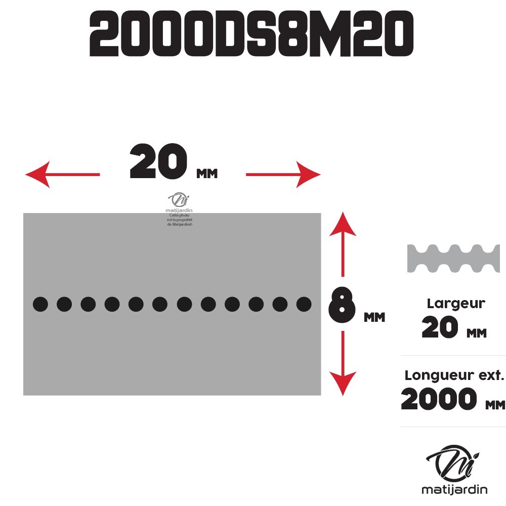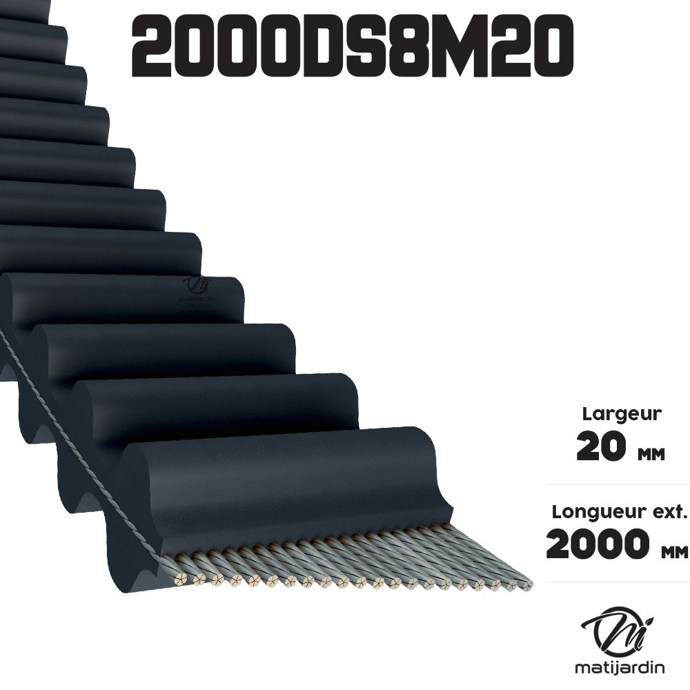 Courroie tondeuse Double denture 2000DS8M20 - 20 mm x 2000 mm