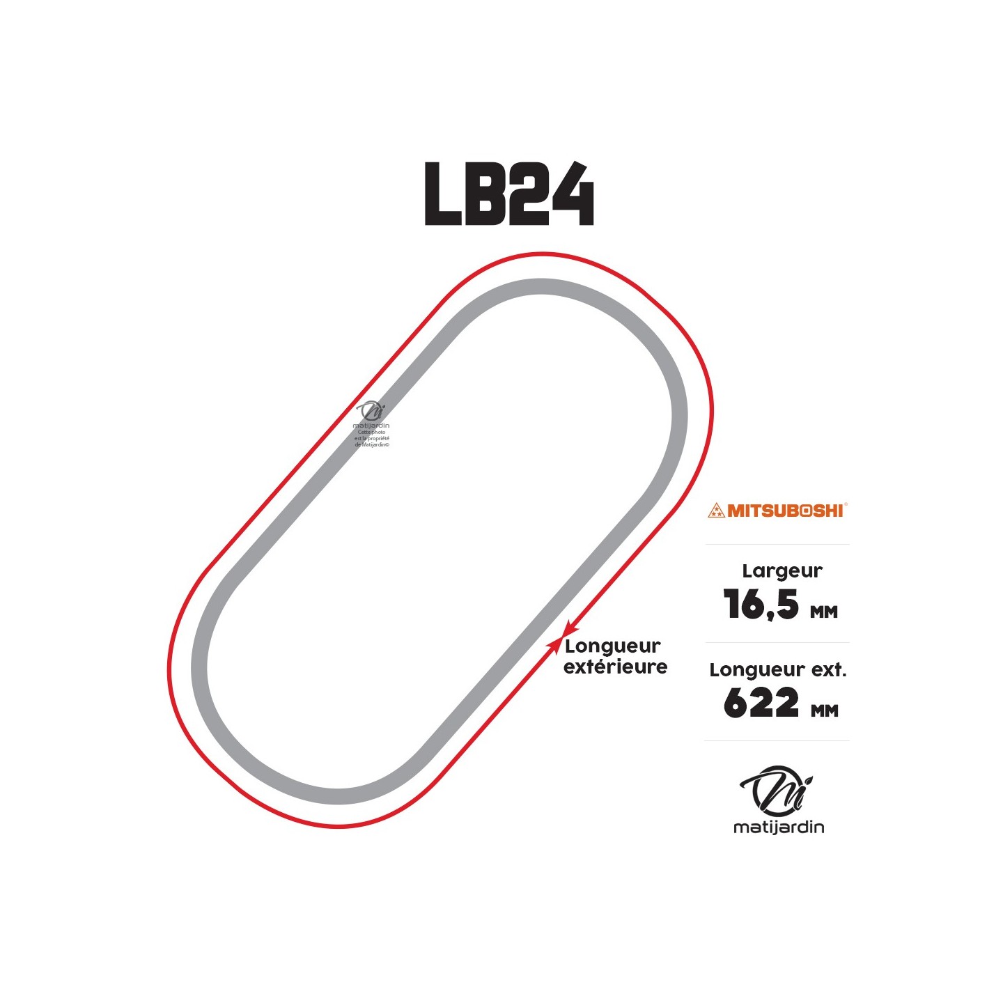 Courroie tondeuse Mitsuboshi LB24 - 16,5 mm x 635 mm