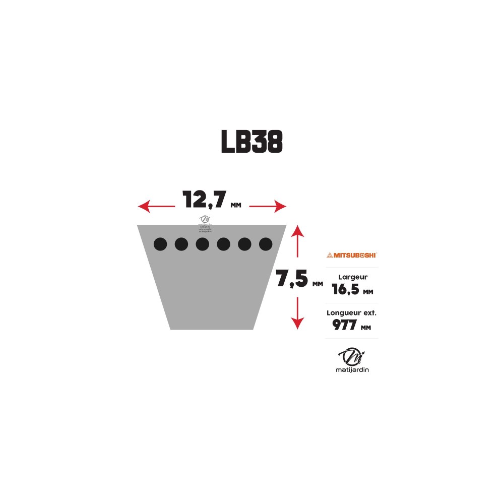 Courroie tondeuse Mitsuboshi LB38 - 16,5 mm x 990 mm