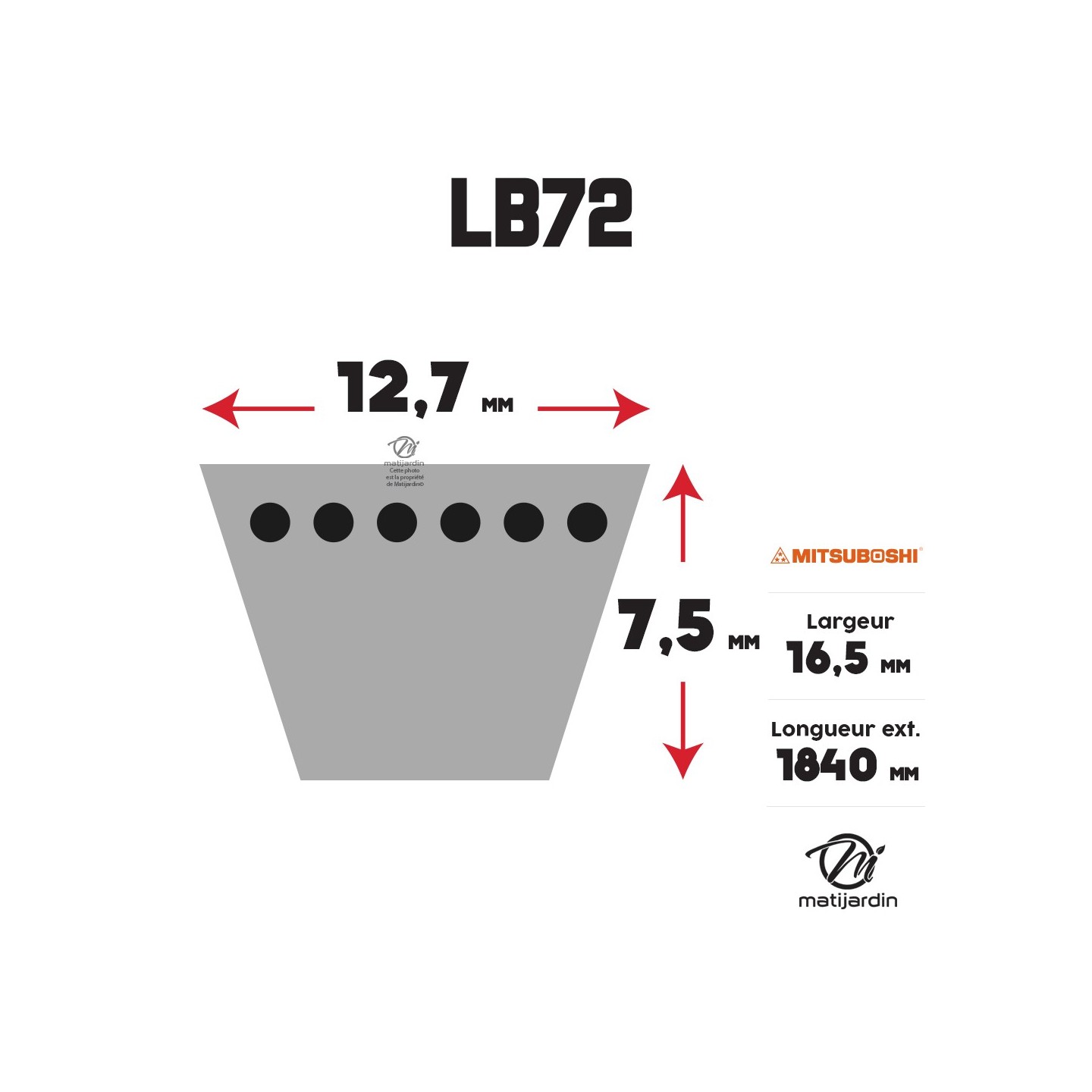Courroie tondeuse Mitsuboshi LB72 - 16,5 x 1854 mm