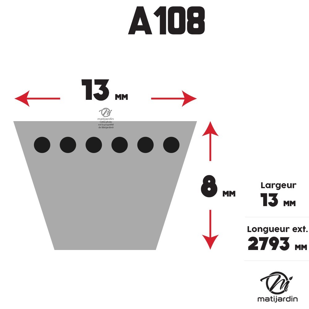 Courroie tondeuse A108 Trapézoïdale - 13 mm x 2793 mm