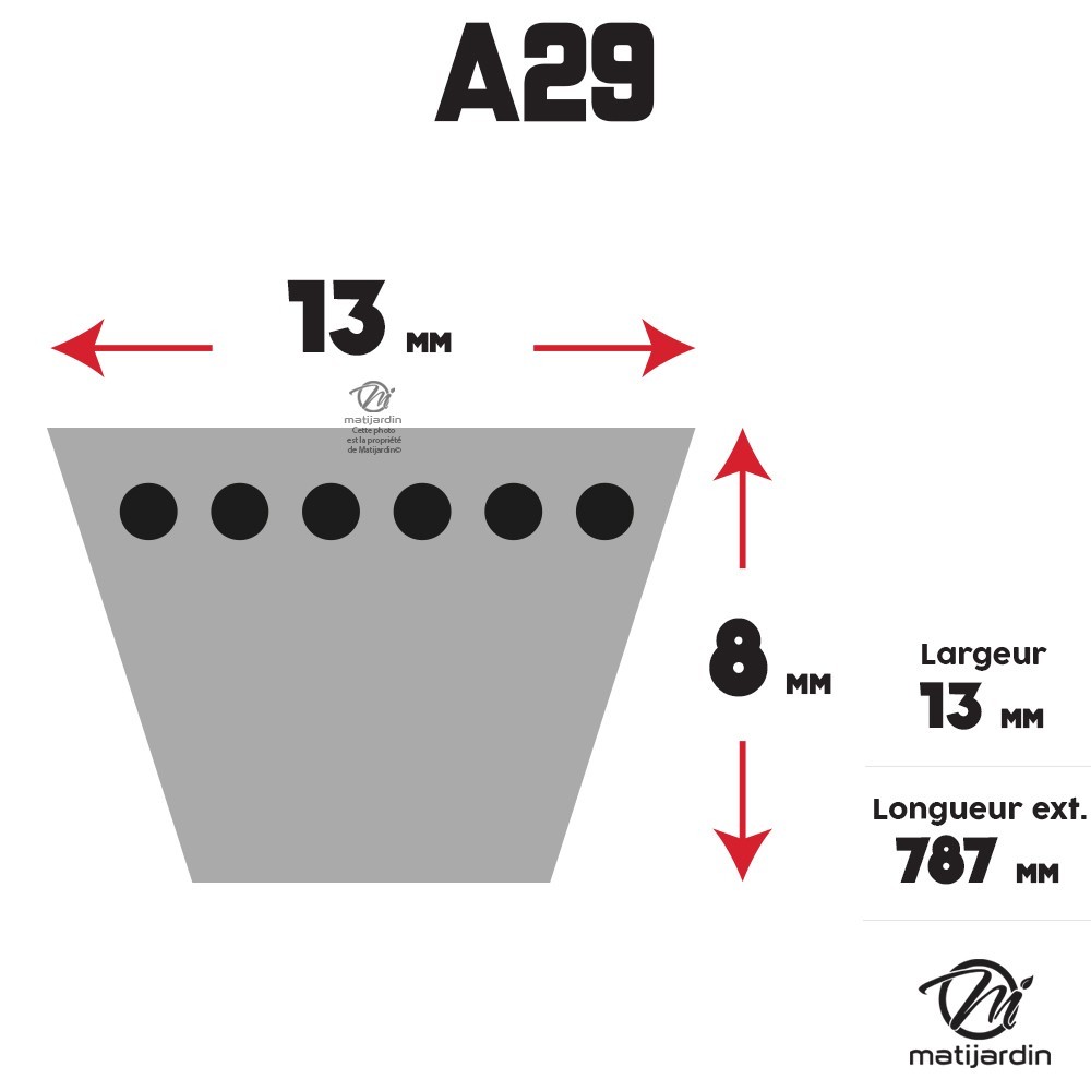 Courroie tondeuse A29 Trapézoïdale - 13 mm x 787 mm