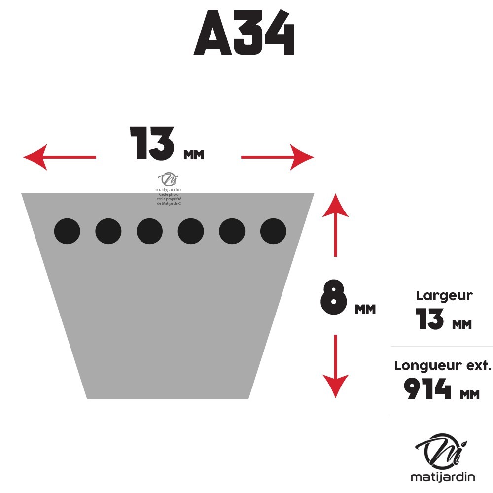 Courroie tondeuse A34 Trapézoïdale - 13 mm x 914 mm
