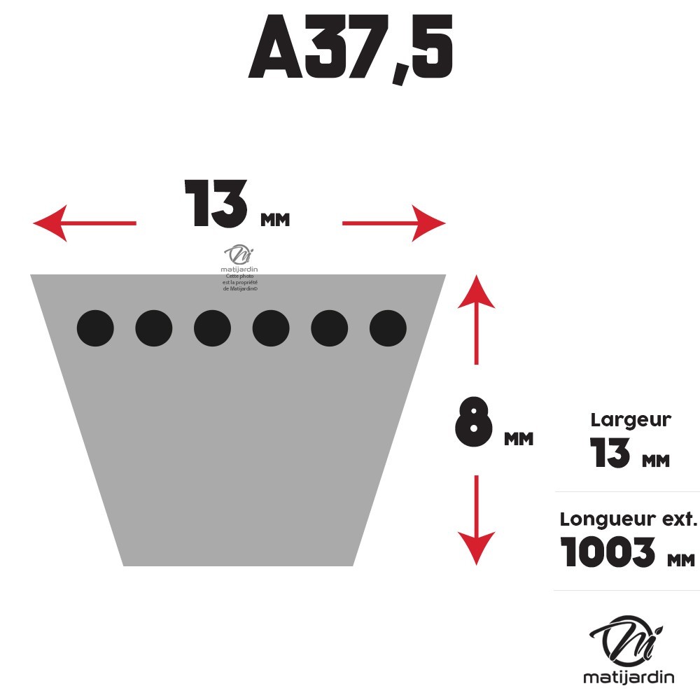 Courroie tondeuse A37,5 Trapézoïdale - 13 mm x 1003 mm