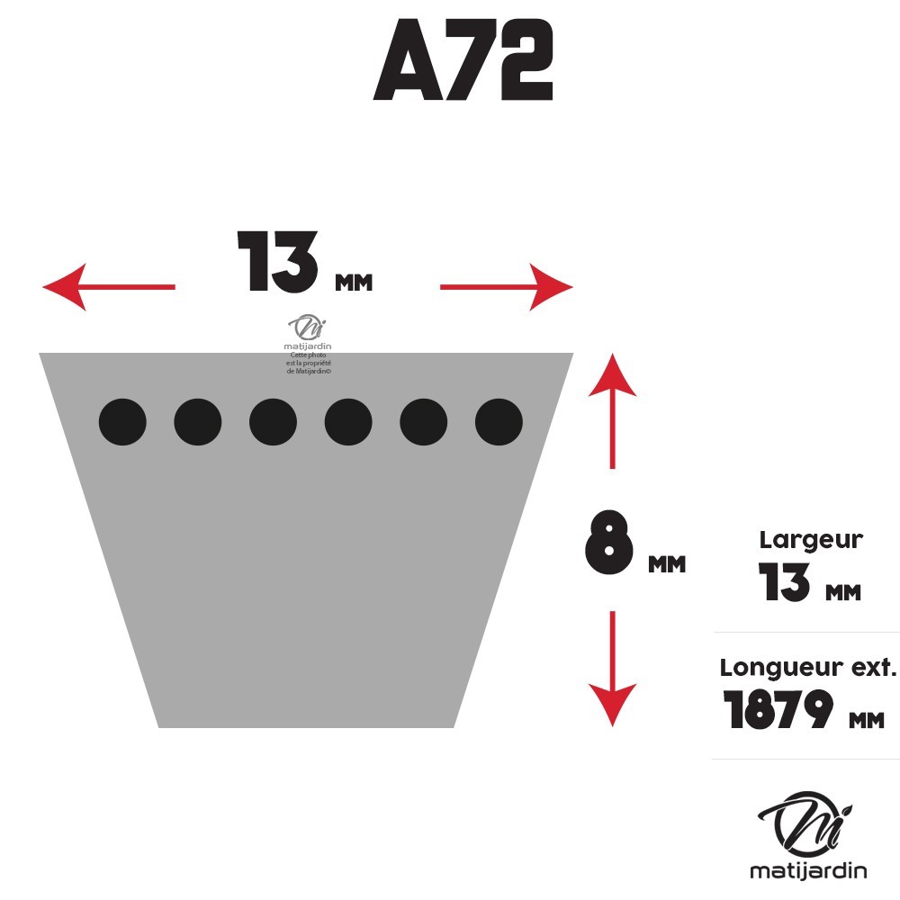 Courroie tondeuse A72 Trapézoïdale - 13 mm x 1879 mm