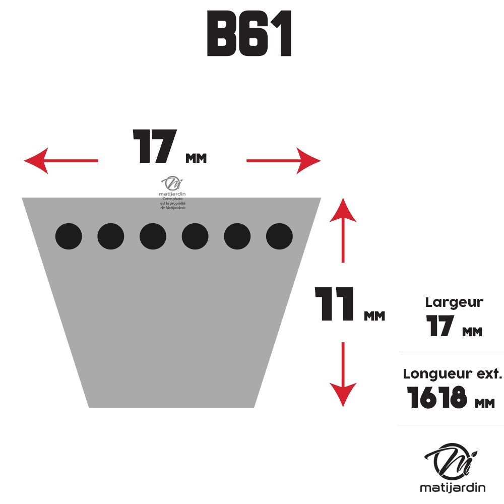 Courroie tondeuse B61 Trapézoïdale - 13 mm x 1618 mm