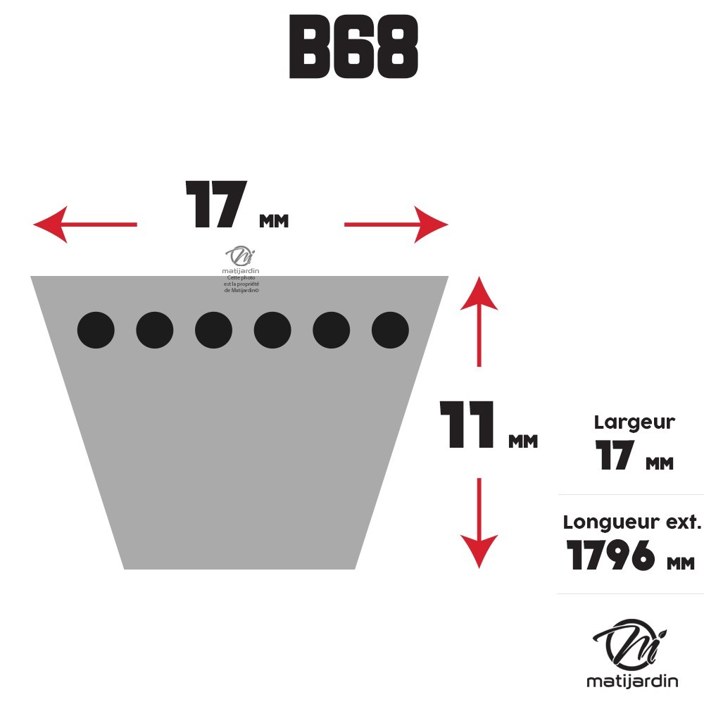 Courroie tondeuse B68 Trapézoïdale - 13 mm x 1796 mm