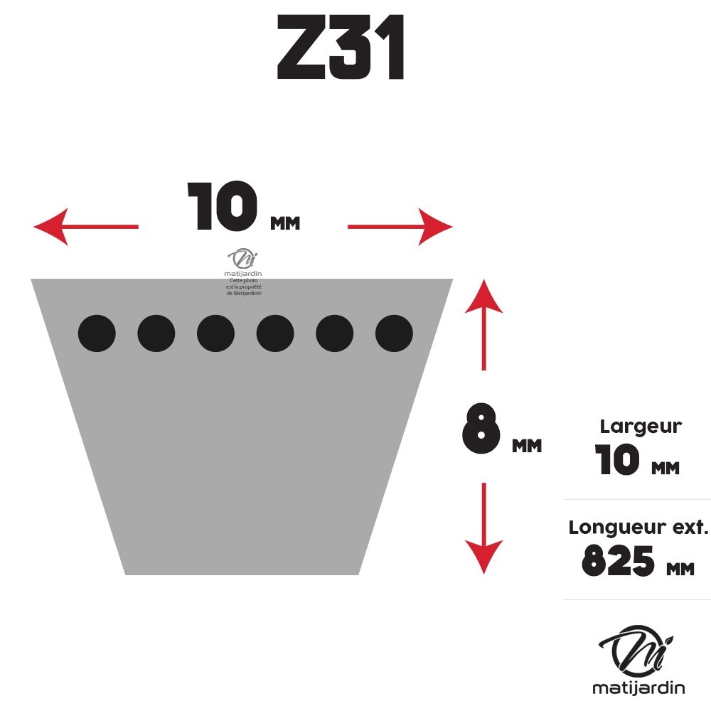 Courroie tondeuse Z31 Trapézoïdale - 10 mm x 825 mm