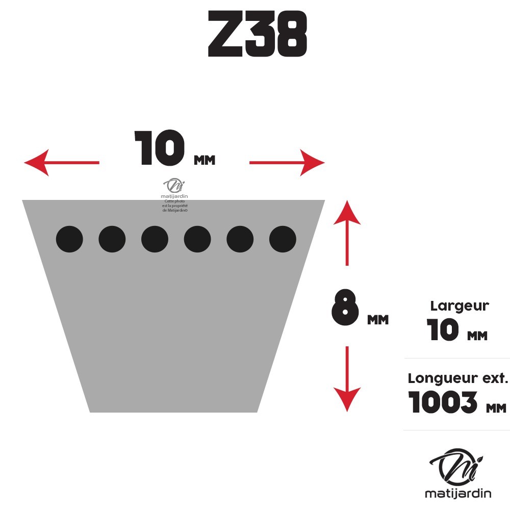 Courroie tondeuse Z38 Trapézoïdale - 10 mm x 1003 mm