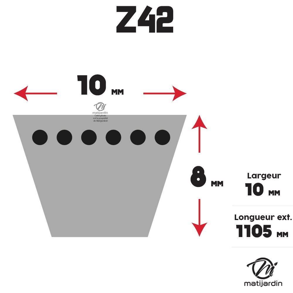 Courroie tondeuse Z42 Trapézoïdale - 10 mm x 1105 mm