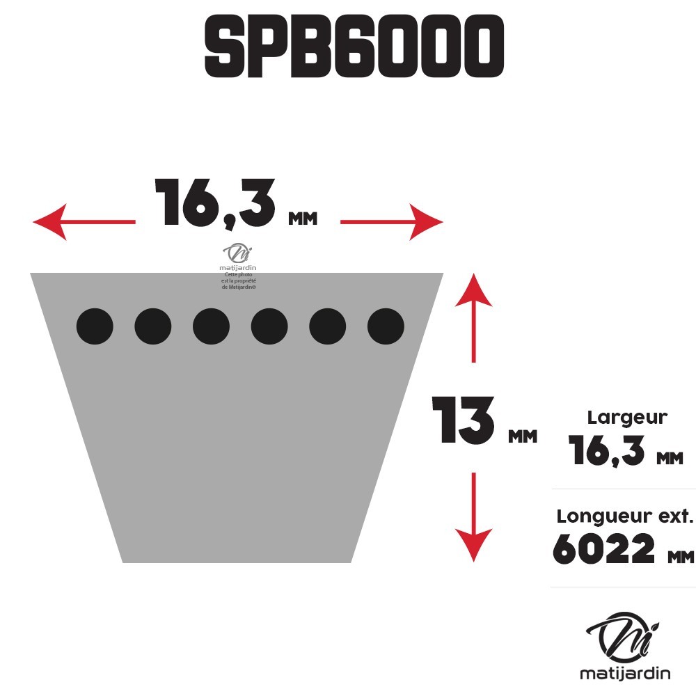 Courroie tondeuse Trapézoïdale SPB6000 - 16,3 mm x 6022 mm