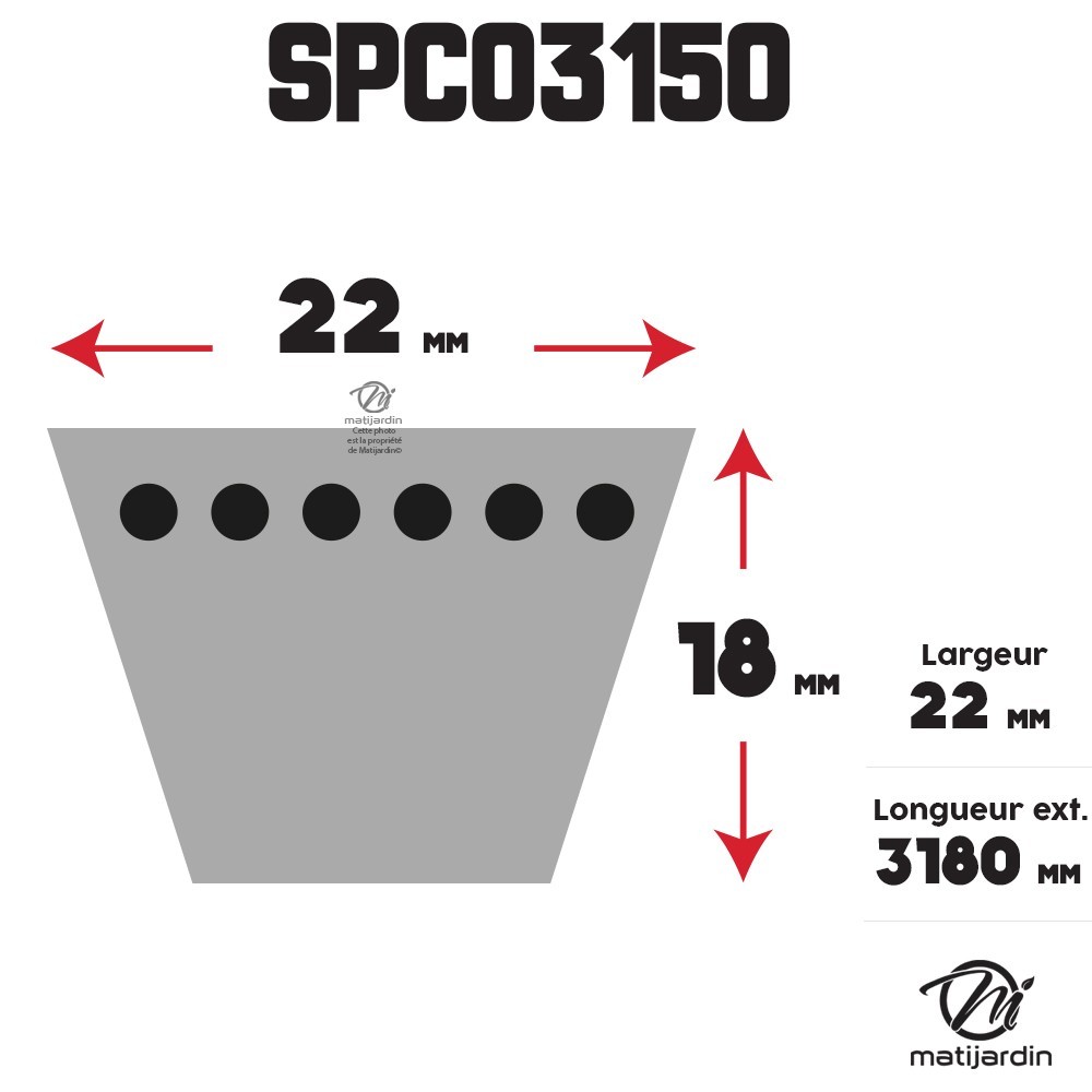 Courroie tondeuse Trapézoïdale SPC3150 - 22 mm x 3180 mm