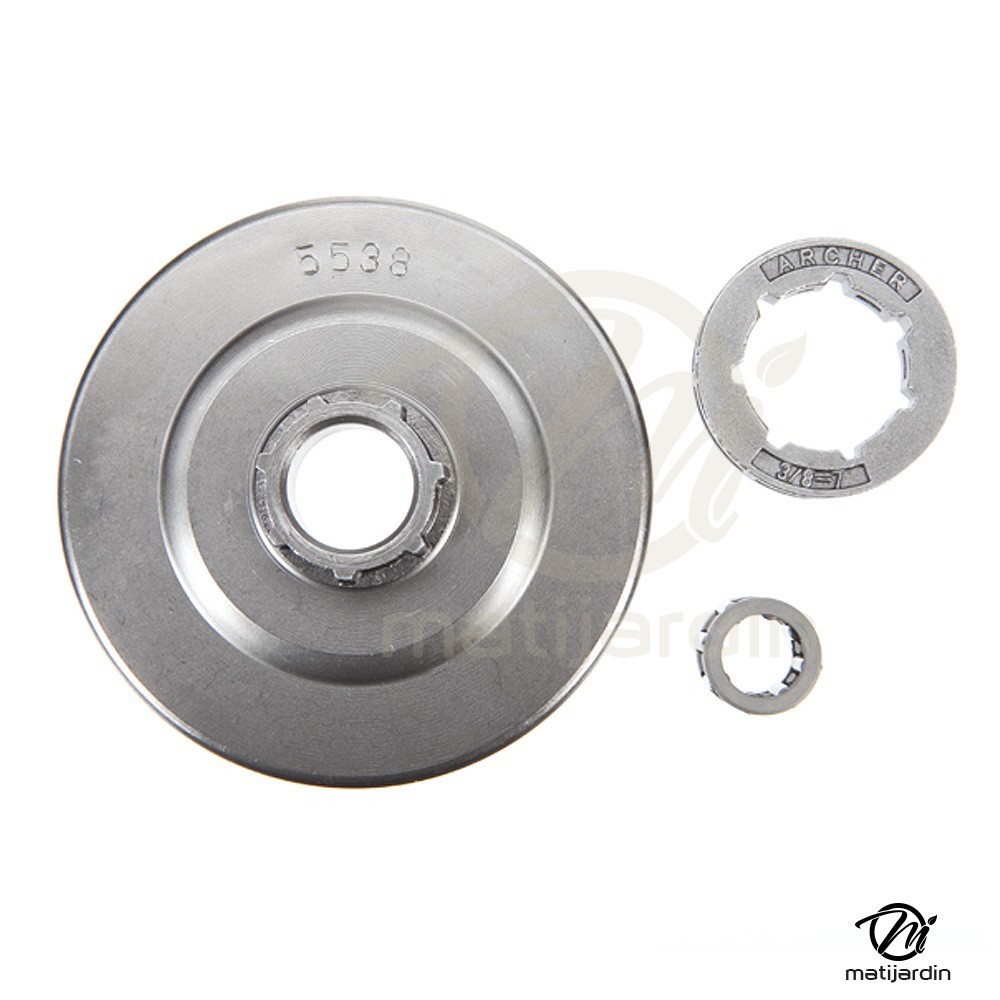 Le pignon d'entraînement de votre chaîne. L'entraînement de la rotation de votre chaîne est dû à la rotation du pignon. Ce pignon est lui-même propulsé par le moteur. L'espacement et le nombre de dents du pignon est en fonction du nombre d'entraîneurs de la chaîne et de son pas. Les entraîneurs guident votre chaîne dans le guide-chaîne et sont entraînés par le pignon. Le pas de la chaîne correspond à la longueur des maillons qui la constituent. A savoir : Notez les références avant de penser à remplacer le pignon, ces infos sont à respecter scrupuleusement.