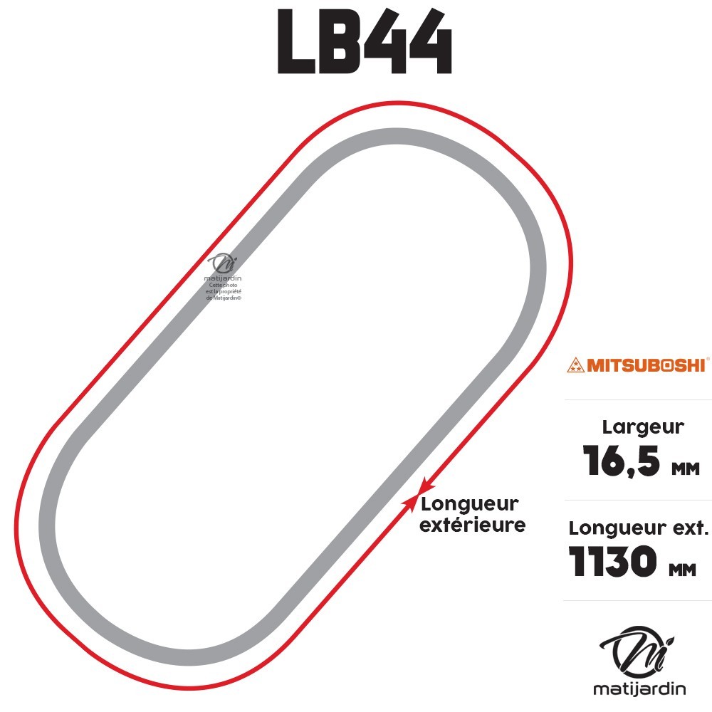 Courroie tondeuse Mitsuboshi LB44 - 16,5 mm x 1143 mm