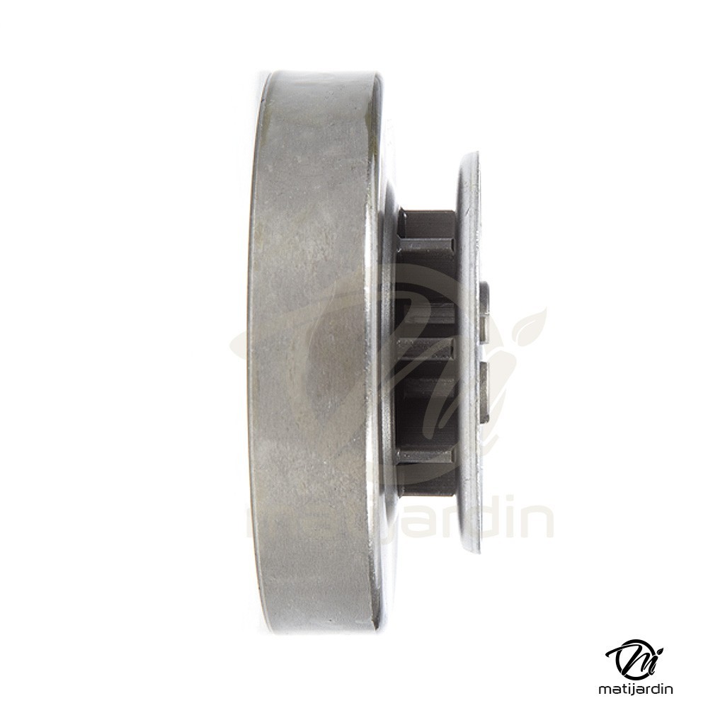 Le pignon d'entraînement de votre chaîne. L'entraînement de la rotation de votre chaîne est dû à la rotation du pignon. Ce pignon est lui-même propulsé par le moteur. L'espacement et le nombre de dents du pignon est en fonction du nombre d'entraîneurs de la chaîne et de son pas. Les entraîneurs guident votre chaîne dans le guide-chaîne et sont entraînés par le pignon. Le pas de la chaîne correspond à la longueur des maillons qui la constituent. A savoir : Notez les références avant de penser à remplacer le pignon, ces infos sont à respecter scrupuleusement.