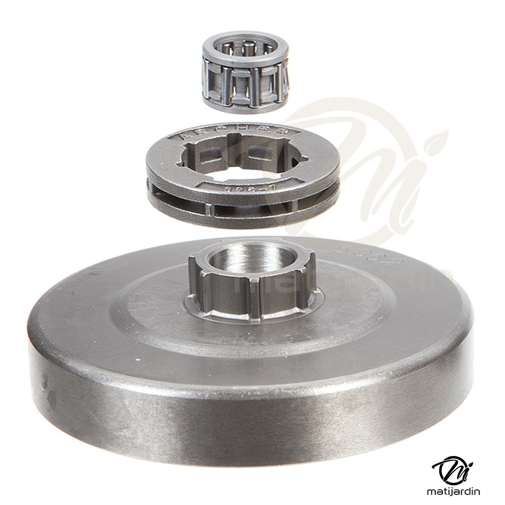 Le pignon d'entraînement de votre chaîne. L'entraînement de la rotation de votre chaîne est dû à la rotation du pignon. Ce pignon est lui-même propulsé par le moteur. L'espacement et le nombre de dents du pignon est en fonction du nombre d'entraîneurs de la chaîne et de son pas. Les entraîneurs guident votre chaîne dans le guide-chaîne et sont entraînés par le pignon. Le pas de la chaîne correspond à la longueur des maillons qui la constituent. A savoir : Notez les références avant de penser à remplacer le pignon, ces infos sont à respecter scrupuleusement.