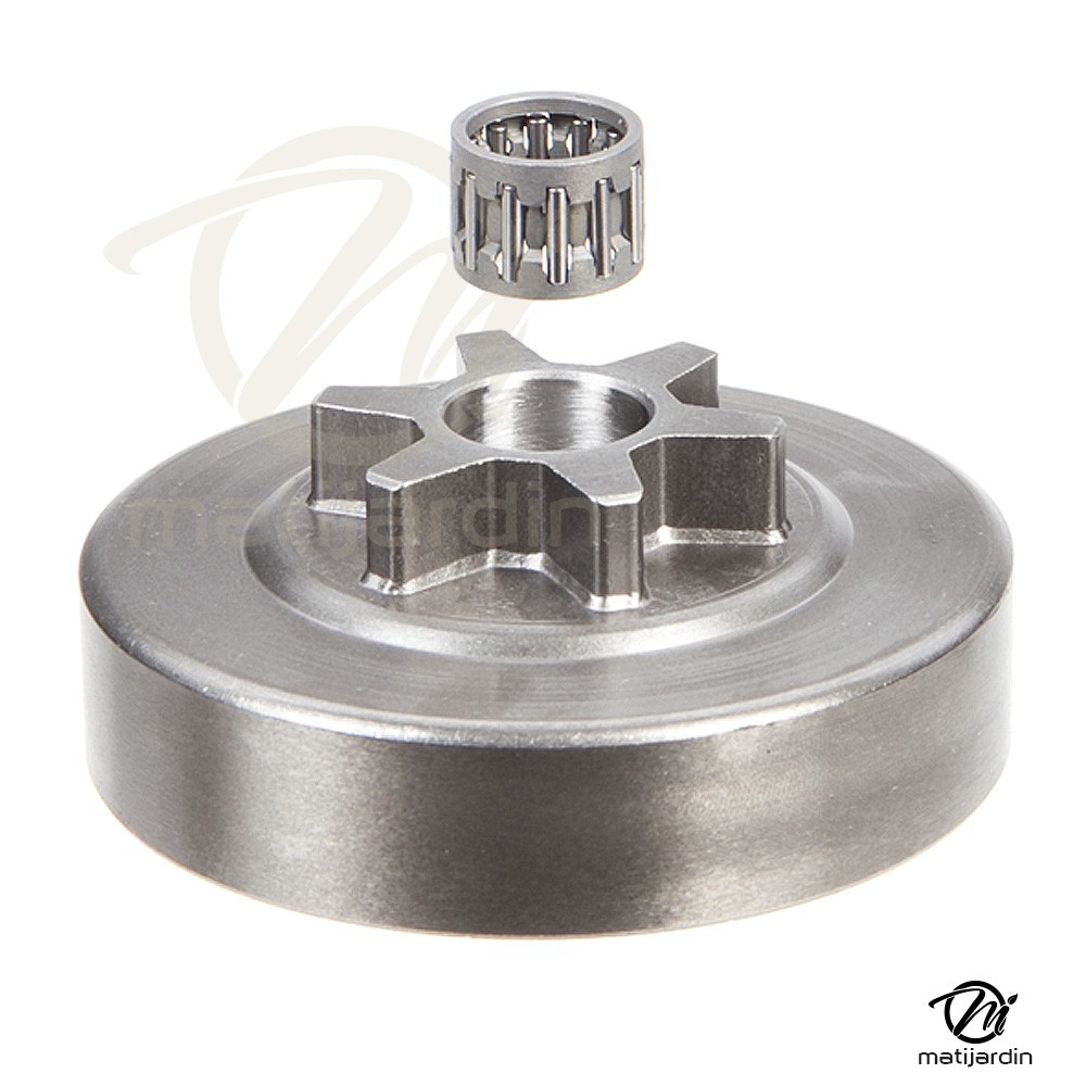 Le pignon d'entraînement de votre chaîne. L'entraînement de la rotation de votre chaîne est dû à la rotation du pignon. Ce pignon est lui-même propulsé par le moteur. L'espacement et le nombre de dents du pignon est en fonction du nombre d'entraîneurs de la chaîne et de son pas. Les entraîneurs guident votre chaîne dans le guide-chaîne et sont entraînés par le pignon. Le pas de la chaîne correspond à la longueur des maillons qui la constituent. A savoir : Notez les références avant de penser à remplacer le pignon, ces infos sont à respecter scrupuleusement.