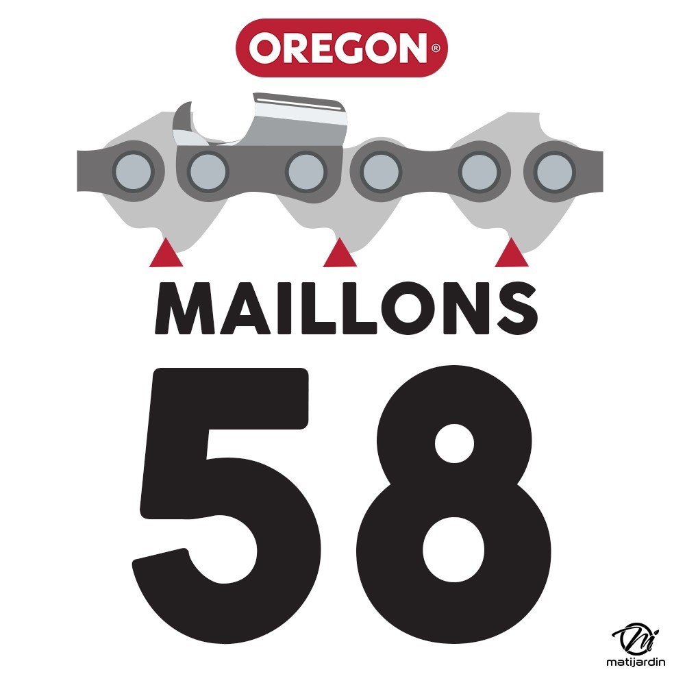 Chaîne Oregon pour tronçonneuse 1/4" 1,3 mm. 58 maillons. Gouge profil demi rond