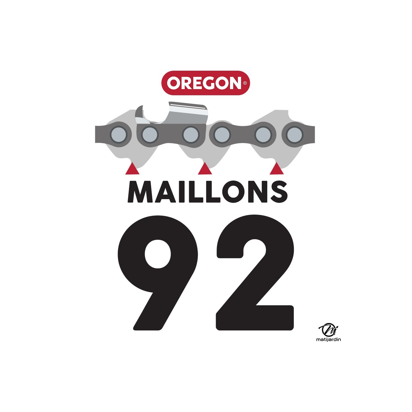 Chaîne Oregon pour tronçonneuse 3/8" 1,5 mm. 92 maillons. Gouge profil carré