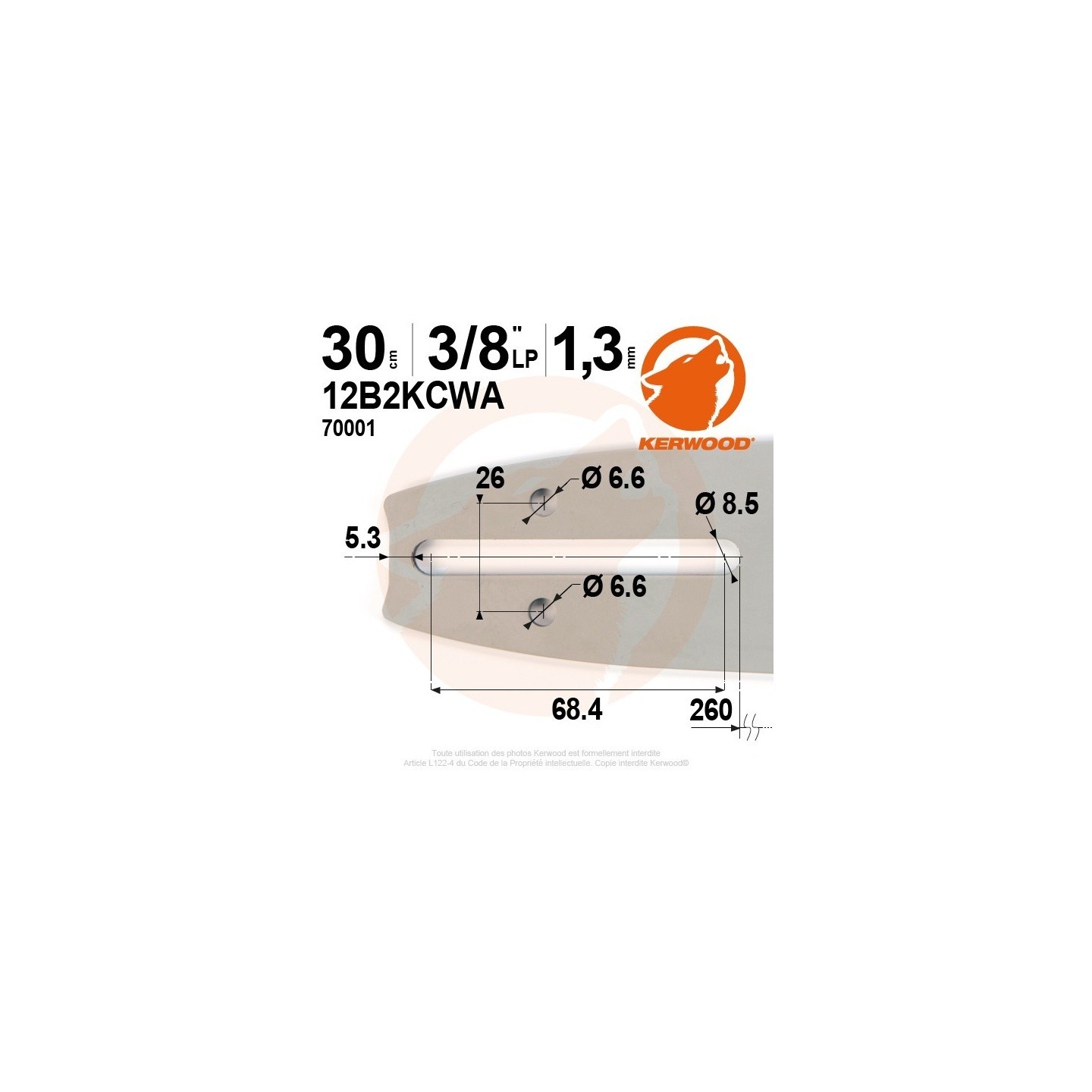 Kit Kerwood guide + chaîne tronçonneuse 30 cm, 3/8"LP 1,3 mm. 45 maillons