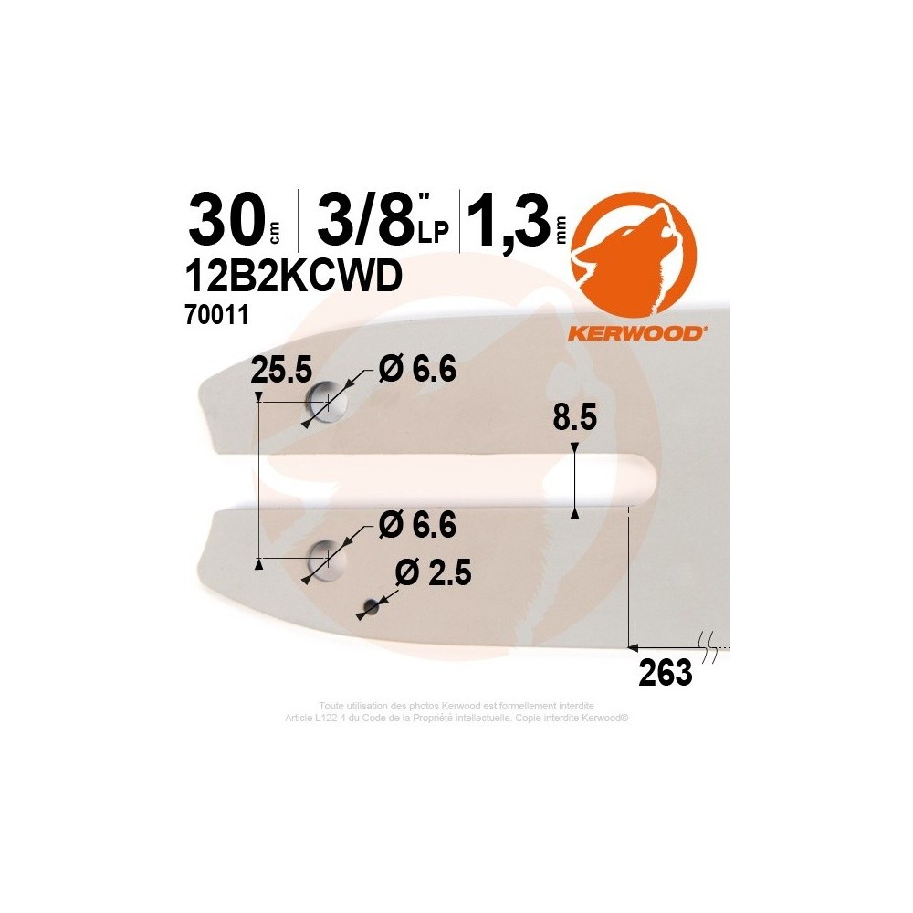 Kit Kerwood guide + chaîne tronçonneuse 30 cm, 3/8"LP 1,3 mm. 44 maillons