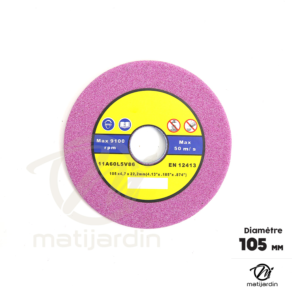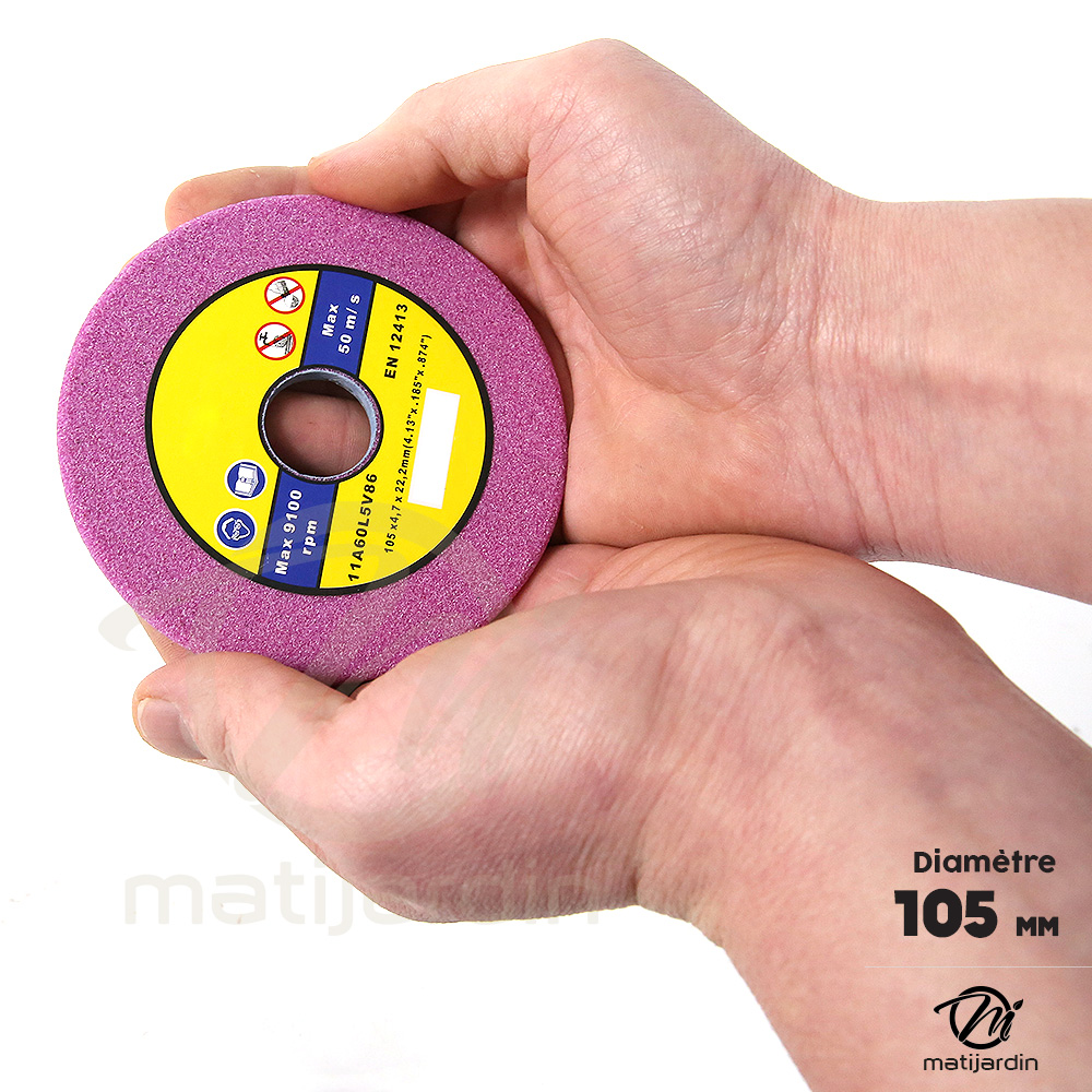 Meule affûtage chaîne pour affûteuse Mini Jolly. Ø 105 mm. Ep.4,5 mm