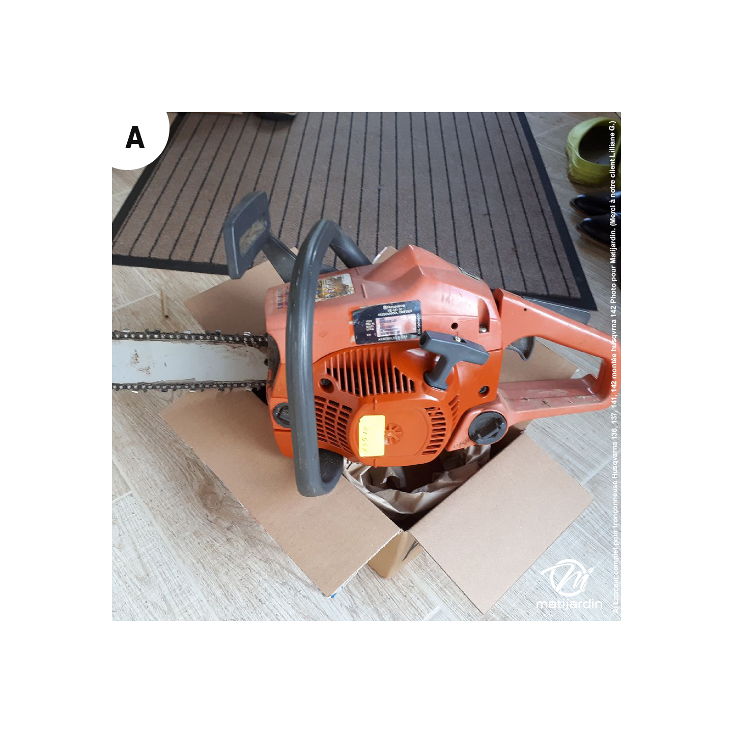 A/ Lanceur complet pour tronçonneuse Husqvarna 136, 137, 141, 142 montée husqvrna 142 Photo pour Matijardin. (Merci à notre client Lilliane G.)